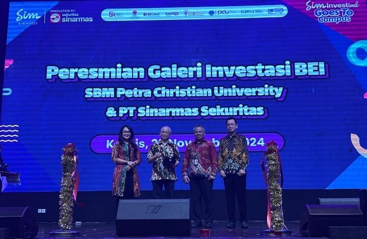 SURABAYA : ( KABARAKTUALITA.COM ) – Sebagai langkah strategis untuk memperkaya ekosistem pendidikan keuangan di Indonesia, Petra Christian University (PCU) bersama Bursa Efek Indonesia (BEI), Otoritas Jasa Keuangan (OJK) dan PT Sinarmas Sekuritas meresmikan Galeri Investasi di Gedung T Lantai 2 Kampus Petra Christian University (PCU).