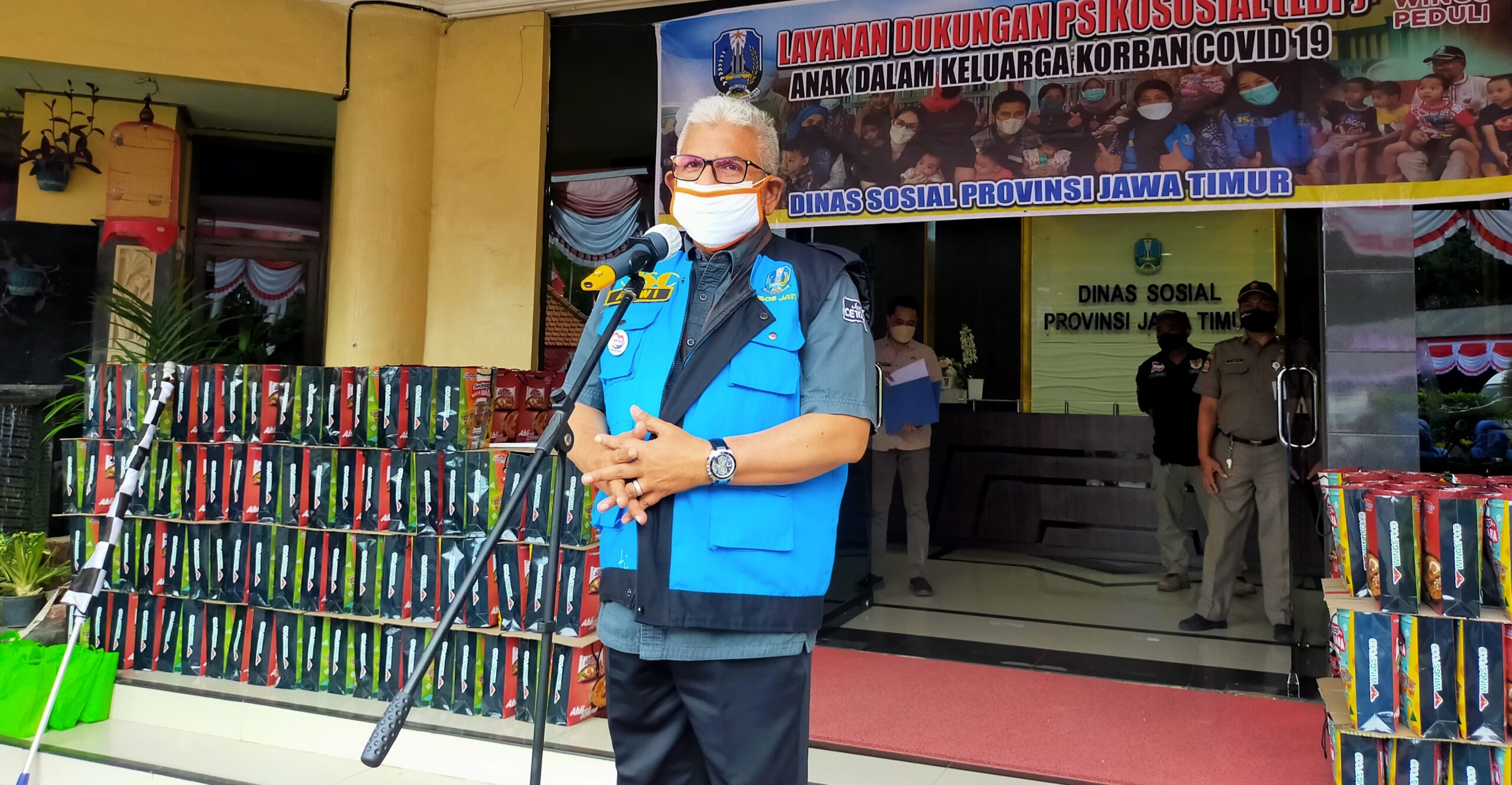 Untuk meringankan beban terhadap Anak – anak tersebut, kini Dinsos Jatim melaunching Gerakan Layanan Dukungan Psikososial bagi keluarga korban Covid – 19 yang digelar di Halaman Dinsos Jatim, Selasa ( 3/8/2021 ).