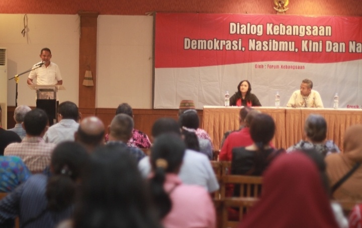 Sebastian Sudin sebagai Ketua Forum Kebangsaan Gresik dalam sambutannya menjelaskan tentang pentingnya kesadaran akan hak konstitusi sebagai warga negara. Untuk menjalankan hak konstitusi tersebut diharapkan pada pemilu yang akan datang semua warga negara menggunakan hak pilihnya.