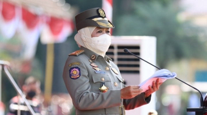 Khofifah Indar Parawansa dalam sambutannya menyampaikan, terima kasih dan apresiasi yang setinggi-tingginya atas dedikasi dan loyalitas yang telah  ditunjukkan selama ini, terutama dalam melaksanakan tugas sebagai Abdi Negara, Abdi Masyarakat dan Abdi Pemerintah untuk meningkatkan Ketertiban umum menjaga keamanan serta melindungi masyarakat.