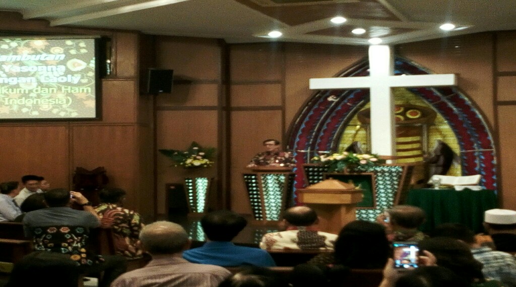 Yasonna berharap,dengan melalui kehadirannya di GKI ini.Pihaknya untuk terus berbagi atau menguatkan warga jemaat bahwa kita tetap teguh apa yang dihadapi. Namun kita jangan marah maupun benci.Tetapi kita tetap menunjukan bahwa kita mampu mengampuni dan mengasihi.