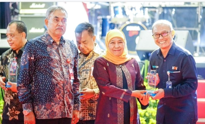Penghargaan ini diberikan langsung oleh Gubernur Jawa Timur, Khofifah Indar Parawansa kepada Deputy Executive Vice President KAI Daop 8 Surabaya, Mariyanto, pada acara Closing CeremonyJatim Fest 2023, Minggu (8/10), di Gedung Jatim Expo, Surabaya.