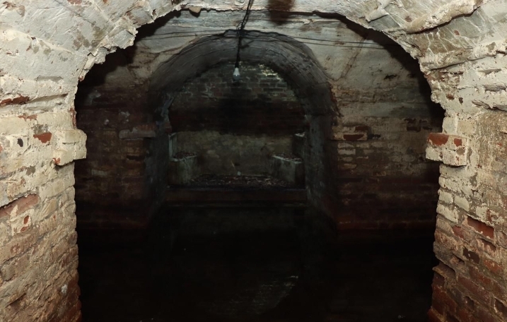 Saat Tjutjuk menuju masuk kebangunan itu, ia mengaku bila lantai bangunan itu sudah terendam air setinggi lutut orang dewasa. Bangunan itu juga gelap dan lembab.