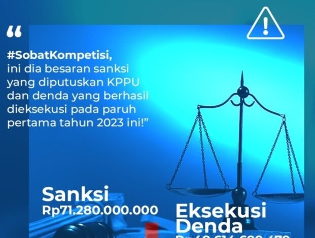 SURABAYA : ( KABARAKTUALITA.COM ) – Sepanjang Semester pertama di tahun 2023, Komisi Persaingan Pengawas Usaha ( KPPU ) telah mengenakan Sanksi Denda melalui putusannya yang mencapai angka 71.280.000.000.