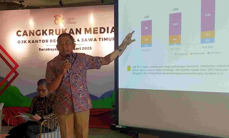 Dihadapan Awak Media Surabaya, Kepala OJK Reg. 4 Jatim, Bambang Mukti Riyadi memaparkan. Bahwa Indeks Literasi dan Inklusi Keuangan Jawa Timur meningkat.Dan ini adalah salah satu pencapaian OJK Reg 4 Jatim disepanjang tahun 2022.