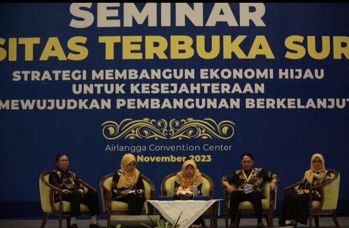SURABAYA : ( KABARAKTUALITA.COM ) – Universitas Terbuka ( UT ) Surabaya menggelar Seminar bertemakan ” Strategi Membangun Ekonomi Hijau untuk Kesejahteraan dan Mewujudkan Pembangunan Berkelanjutan ” dengan pokok bahasan Energi Terbarukan yang diisi oleh staff ahli kepresidenan Dr. Ahmad Agus Setiawan .