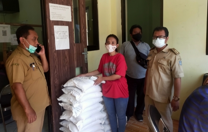 Sebanyak 581 beras dengan kemasan kantong 10 Kg dari Kemensos tersebut langsung disalurkan bagi warga yang terdampak Covid -19.
